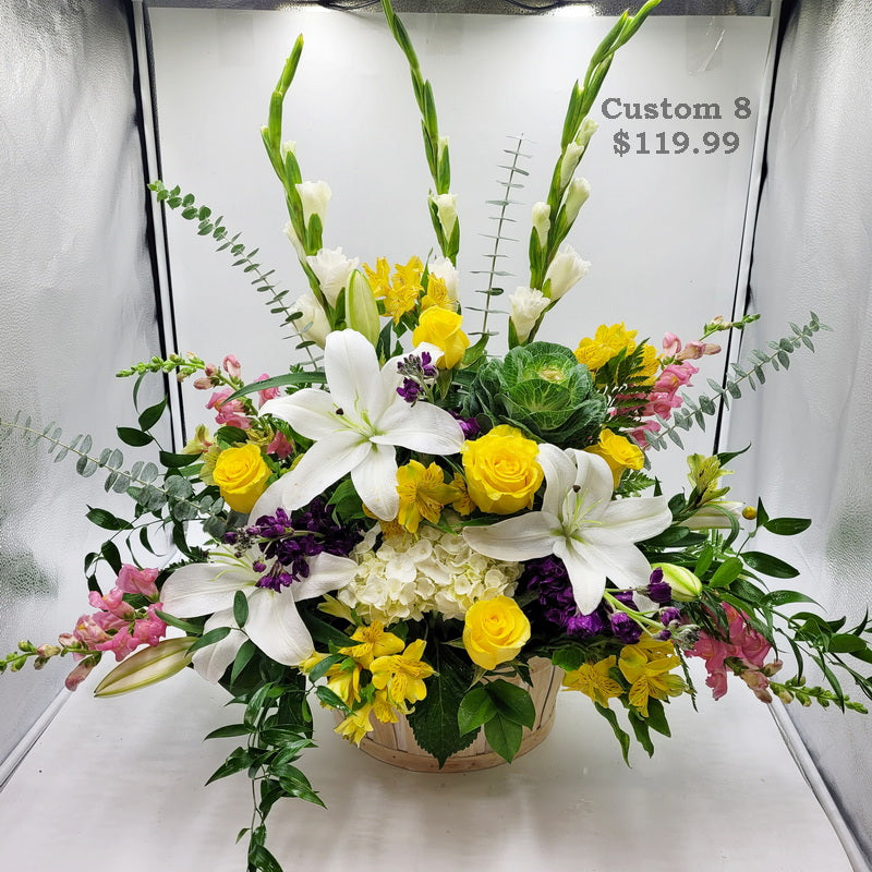 Color of the flowers and the size of the arrangement can be modified to meet your needs and the budget.